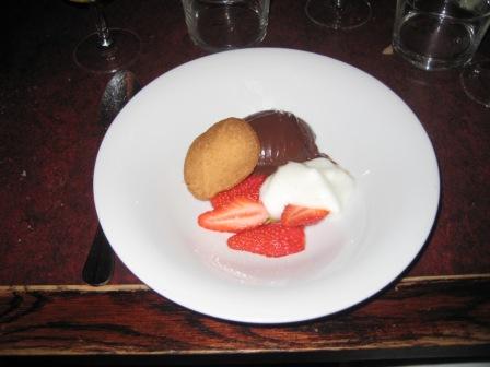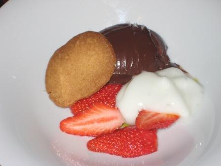 Il dolce e’ Chocolat, fraises, wasabi, ovvero una mousse di ottimo cioccolato servita con fragole ed una schiuma al wasabi, inusuale e strano l’abbinamento ma interessantissimo il risultato finale.
