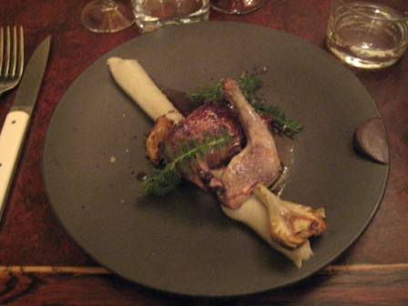 Arriva il Piccione, con carciofi e crema di porri, piatto ben fatto e ben presentato, cottura perfetta.