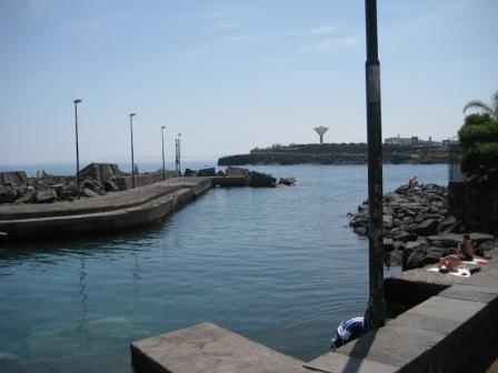 Imbocchiamo la strada che scende verso il mare, ci districhiamo tra le numerose macchine che sono in fila alla disperata ricerca di un parcheggio (ma come non era isola pedonale???) le panchine sul lato della strada sono inarrivabili perche’ i numerosi motorini impediscono il passaggio, la spiaggia nera di “sabbia vulcanica” (nessuno piu’ si ricorda che e’ tutto materiale di risulta da smaltire in discarica come rifiuto speciale, e depositato li’ abusivamente) si incontra con l’acqua tutt’altro che cristallina del golfo di Ognuna (dimenticato anche il divieto di balneazione).