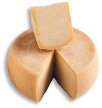 La forma e’ cilindrica a facce piane o lievemente concave, la crosta e’ di colore giallo ambrato tendente al marrone con l’avanzare della stagionatura, la pasta e’ bianca tendente al paglierino, la consistenza e’ compatta.