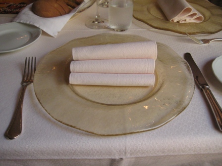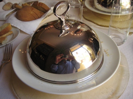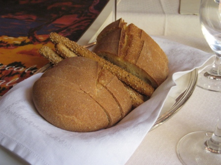 L’apparecchiatura e’ garbata e non troppo formale, ci viene subito servito un cesto di pane e dei grissini, e ci viene portato il menu’.