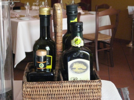Ci viene portato al tavolo un simpatico cesto con quattro diverse varieta’ di olio