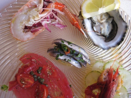 Eccoci alla prima portata…lo stesso paesaggio marino che avevamo lasciato qualche istante prima sul lungomare ci si ripropone adesso su di un piatto, con tanto di “gabbiani” e rumore di “onde”;