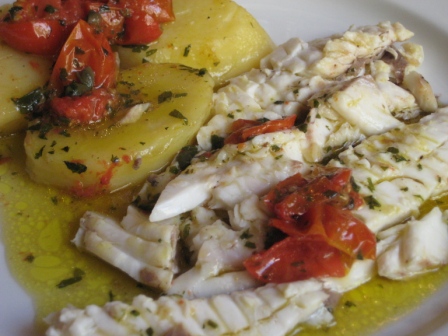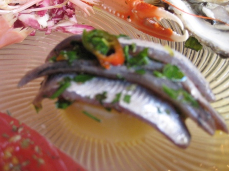 e per concludere una patata leggermente cotta, su cui sono appoggiate delle ottime alici condite con un piacevolissimo peperoncino fresco, gustoso e molto piccante.