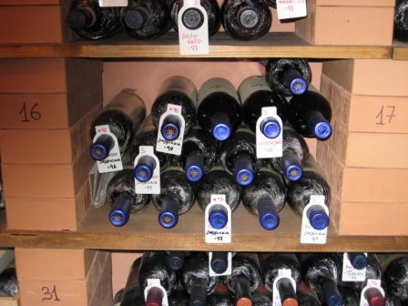 Anche qui’ la sorpresa e’ tanta nel vedere una cantina cosi’ ben curata ed organizzata, ai limiti del maniacale, con bottiglie addirittura avvolte nella pellicola per evitare l’abrasione delle etichette.