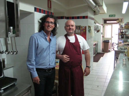 Appena fuori dalla cantina, passiamo in cucina, dove conosciamo lo chef Franco Cafeo, ci scusiamo per l’invasione e ci complimentiamo per i piatti fino ad ora assaggiati;