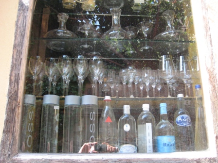 l’ambiente rustico e qualche suppellettile d’epoca contribuiscono a dare al piccolo spazio, un atmosfera calda e piacevole, all’esterno del locale una bella esposizione di acque minerali( per la soddisfazione del collega Gianfranco che in questo periodo ha il pallino delle acque).
