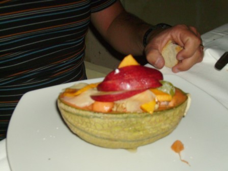 Accomodandoci al tavolo e degustando diverse pietanze, ci accorgiamo subito dell’attenzione verso i prodotti locali, dal Ragusano D.O.P. all’olio di Chiaramente Gulfi, all’immancabile Cerasuolo di Vittoria D.O.C.G. (COS, Valle dell’Acate, Gulfi ecc.).