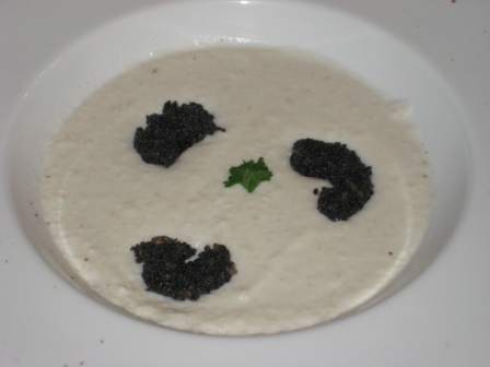 Proseguiamo con il nostro antipasto: zappetta di mandorle di Avola, con gamberetti fritti in crosta nera;