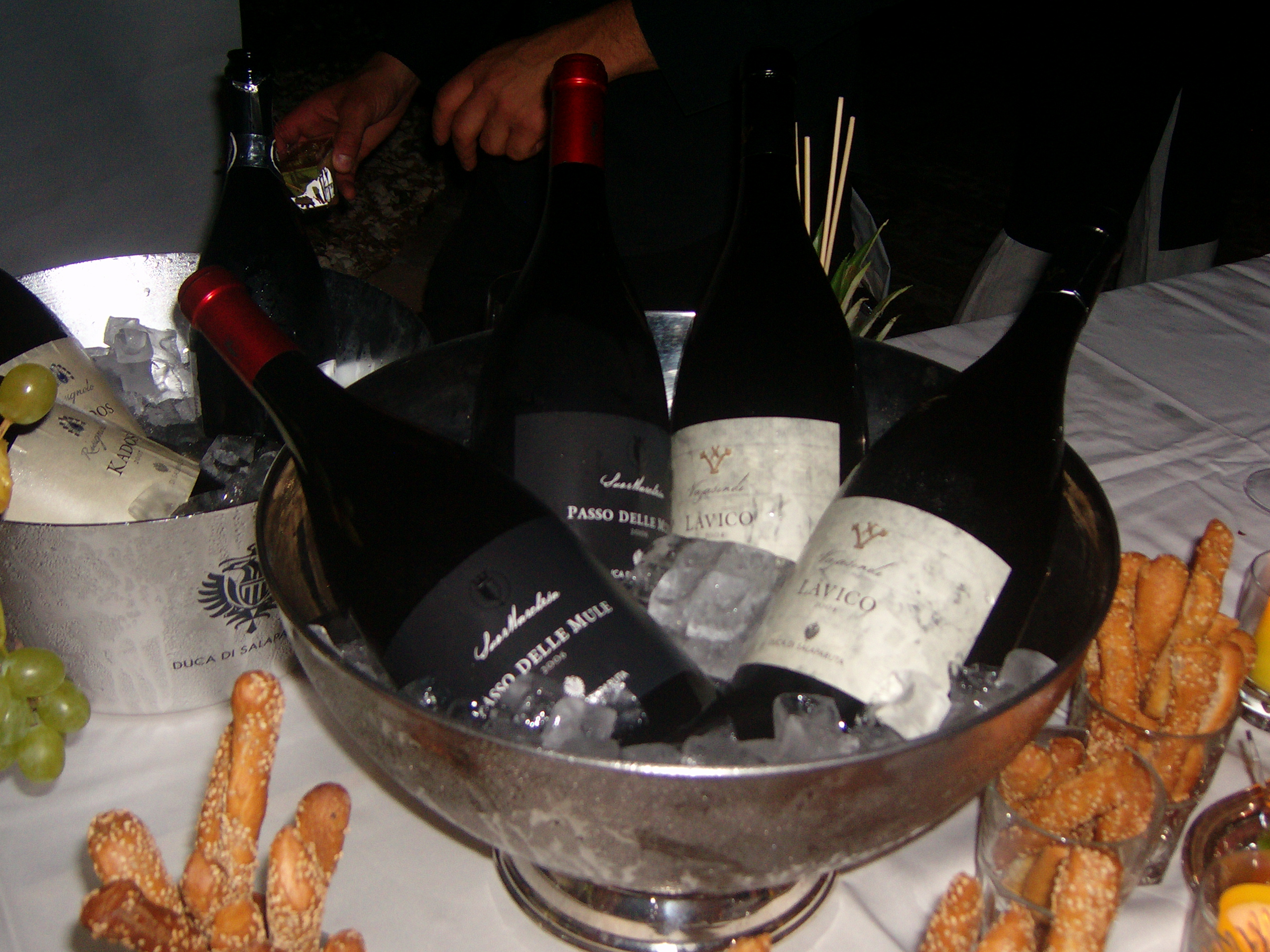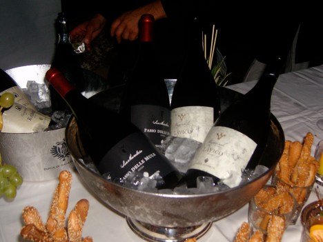Valorizzati nelle tre Tenute di Suormarchesa, Vajasindi e Rosignolo stasera si degustano il vino spumante Duca Brut Riserva, vino spumante; il Kados, un nuovo bianco dal profumo floreale e vanigliato ottenuto dal vitigno Grillo; il Passo delle Mule, Nero d’Avola in purezza e il Lavico, vino elegante e ricco di personalità prodotto alle pendici dell’Etna con protagonista il Nerello Mascalese al 90% completato dal 10% di Merlot.