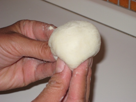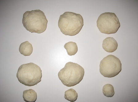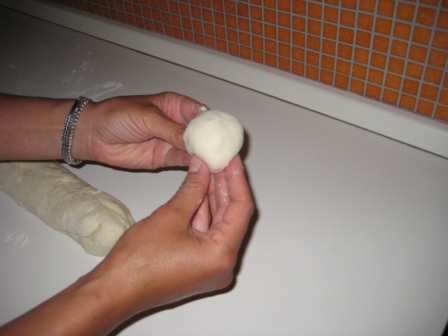 e si divide in 12 palline del diametro di circa 6/7 cm, ed altrettante piu’ piccole, che successivamente andranno a formare il famoso cappello (o coppola/ tuppo ecc).