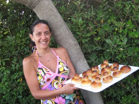 Finalmente Concetta sforna la teglia e mostra orgogliosa le sue creazioni.