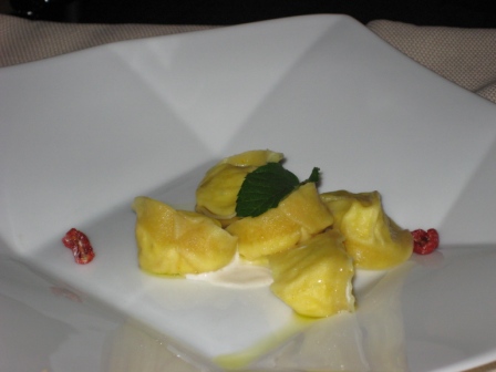 Per mia moglie invece ravioli di pasta fresca con ricotta di Valdemone , straordinaria la consistenza della pasta sottilissima e compatta, molto delicata la farcitura (forse troppo).