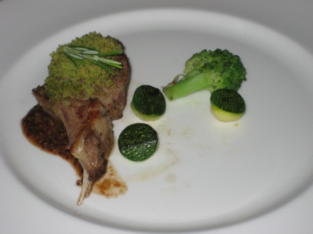 Per concludere, l’agnello ottimo anch’esso, sovrastato da una gradevole panure alle erbe e completato da una piacevolissima mostarda.