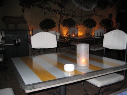 L’anno scorso, nello stesso periodo, beccammo una delle giornate piu’ calde della stagione e mangiammo dentro, per cercare di alleviare la calura con un po di aria condizionata; quest’oggi, siamo piu’ fortunati, il clima e’ perfetto ed il nostro tavolo e’ all’aperto.