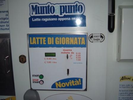 Trattasi proprio di latte crudo non pastorizzato da ritirare direttamente inserendo la bottiglia in plastica fornita al costo di 20 cent. nell’erogatore e vedere uscire il buon latte fresco e dissetante. Si puo’scegliere di acquistare un litro di latte al costo di 1 euro, o optare per mezzo litro, naturalmente a costo di 50 cent.;come si suol dire, dal produttore al consumatore. Una volta acquistato, il prodotto dovra’ essere consumato entro 2 giorni, magari dopo una bella giornata di mare e di sole a Marina di Ragusa, si ci potra’ rinfrescare con un bel bicchiere di latte fresco appena munto, proveniente dal ricco territorio ibleo.