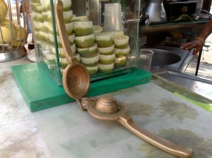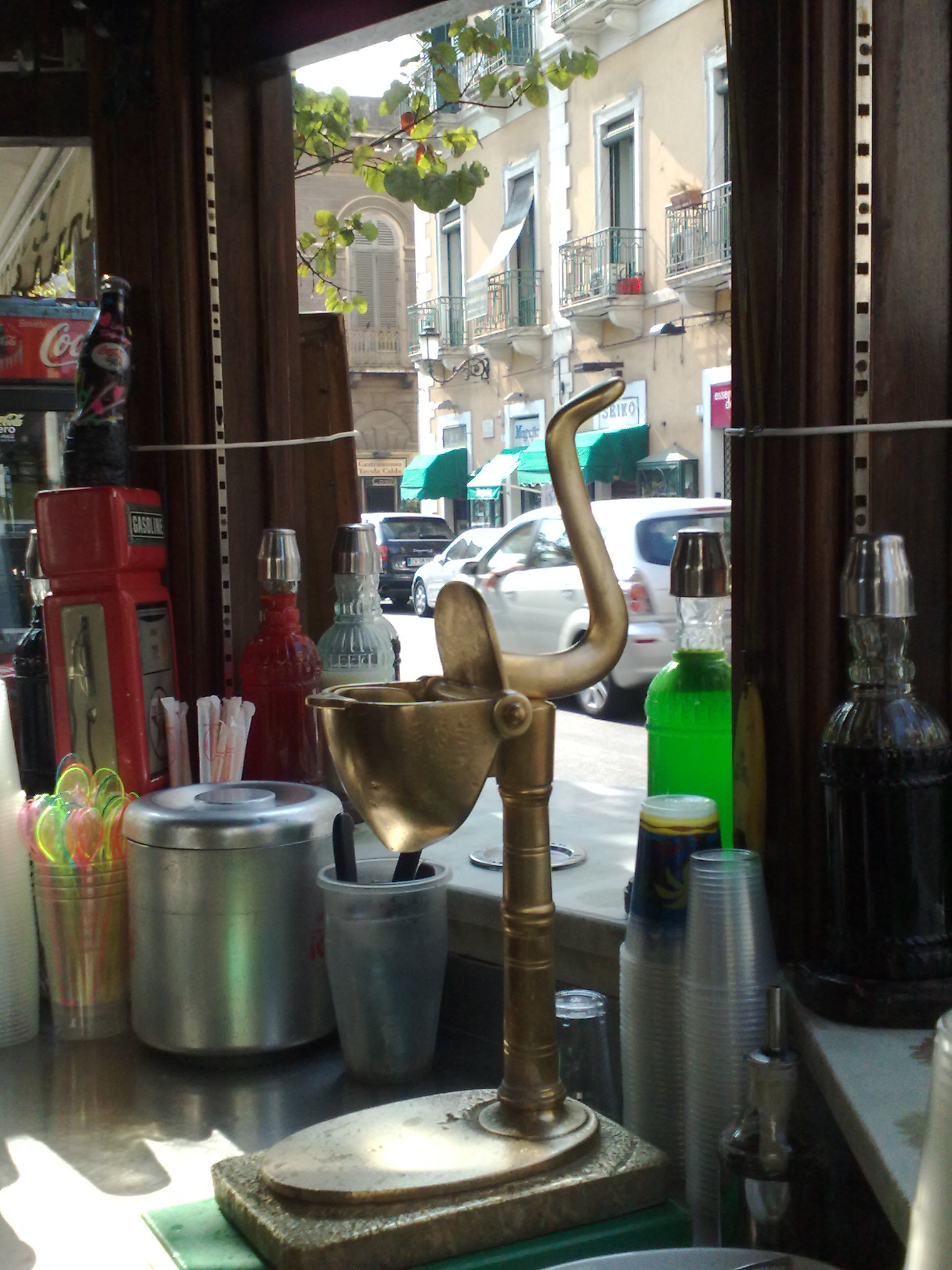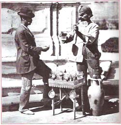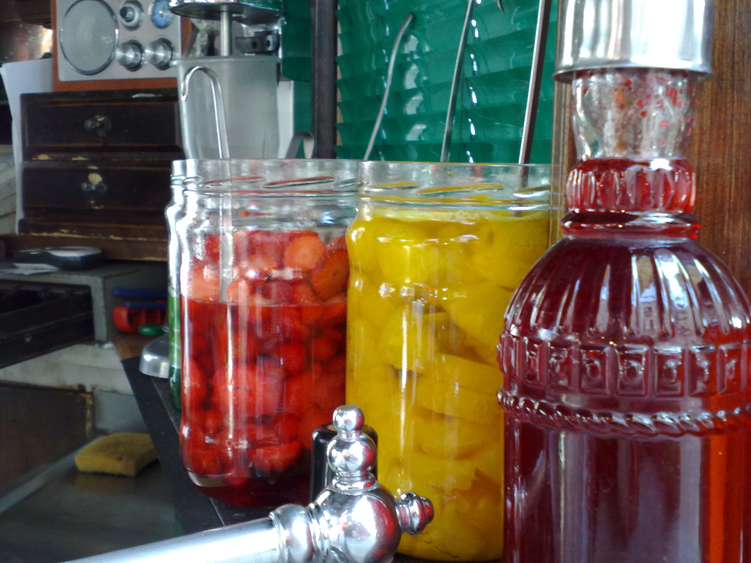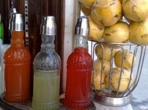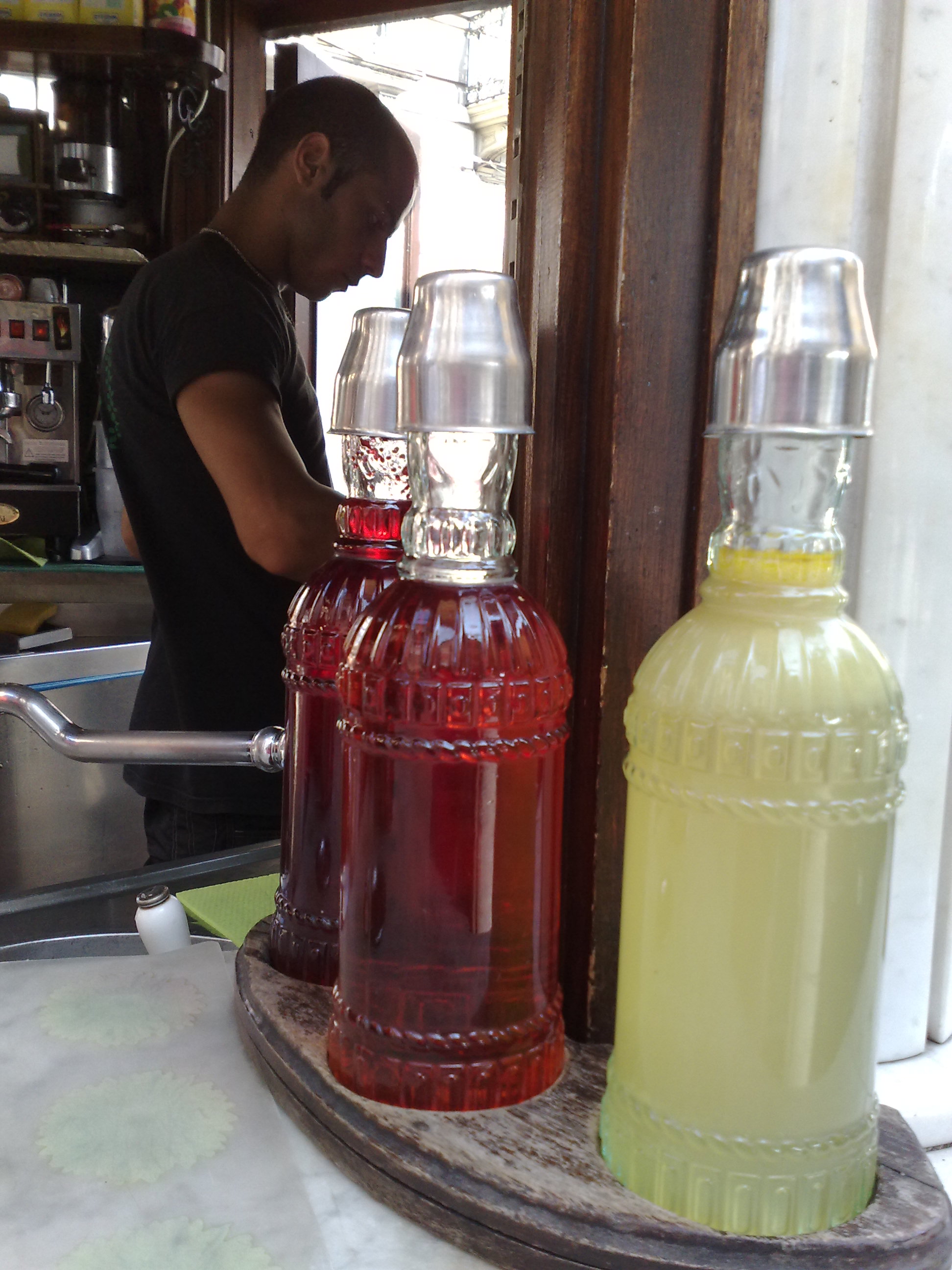 Sciroppi, frutta, seltz sempre frizzantissimo e freddo, limoni accuratamete tagliati e pronti ad essere spremuti con uno spremiagrumi in ottone fabbricato ancora da artigiani e difficile da reperire oltre che costosissimo.