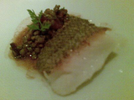 subito dopo viene servito un trancio di baccalà con lenticchie e salsa di pomodoro….