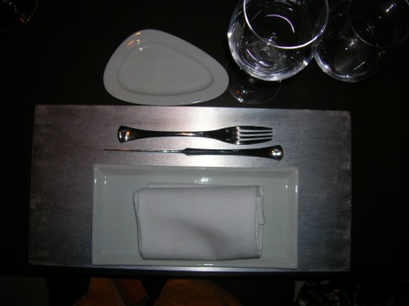 Graziosa la mise en place, con posate particolari e moderne…..