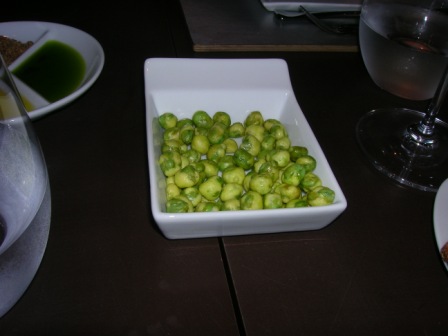 Cominciamo subito, con un aperitivo; due calici di Cava (Vino spumante Spagnolo) accompagnati da sfiziosi stuzzichini di ceci al pepe verde ….