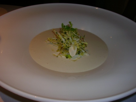 Nel primo viene servita una zuppa di yogurt, con pere e insalata….