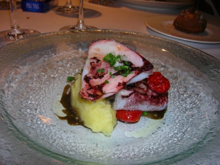 Contestualmente, viene servito un calamaro al vapore, con fagiolini, purè di patate e ciliegino…quanta freschezza e bontà….