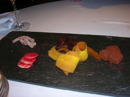 Concludiamo la cena con un grappa e classici dolcetti secchi fra cui anche bucce di arancia caramellate e tartufi di cioccolato….