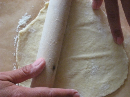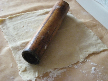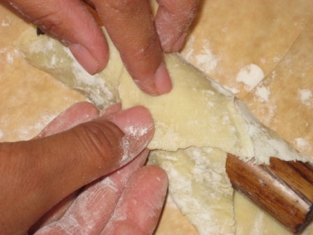 Dopodicche’ , eccoci alla fase piu’ importante della preparazione, stiriamo la sfoglia, ricavando dei quadrati di circa 10cm;