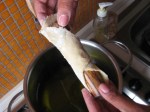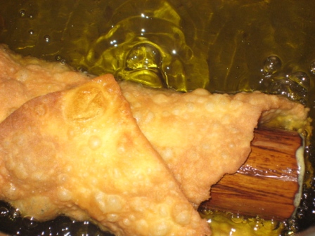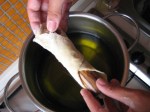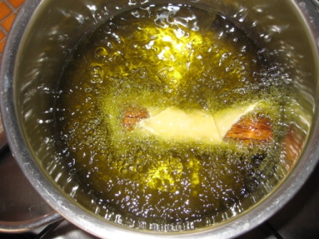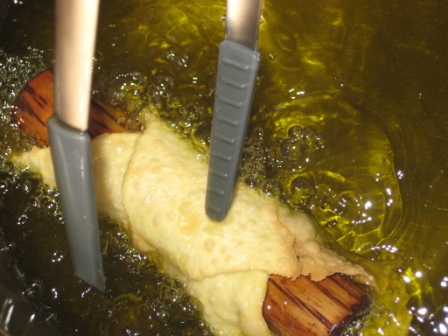 Dopo aver ripetuto l’operazione piu’ volte, siamo pronti per la frittura; in pentola, l’abbondante olio e’ gia’ fumante.