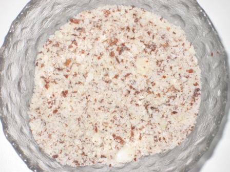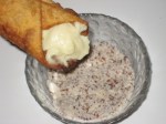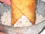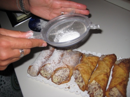 Per completare il tutto…sempre seguendo la ricetta di Mineo, Consetta bagna le due estremita’ del cannolo in un trito di mandorla, con e senza buccia (niente pistacchi come si usa a Catania o frutta candita che si usa invece a Palermo).