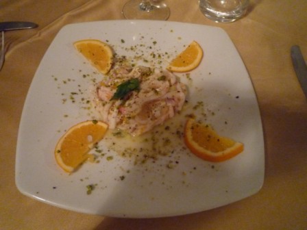 Passiamo all’antipasto: Marinata di Calamari con salsa di agrumi, per mia moglie,
