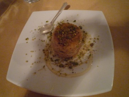Ed ora i dessert! Katia sceglie un parfait con pistacchio ed un profumatissimo miele di zagara, io la seguo sempre col parfait ma di datteri con cannella…squisito.