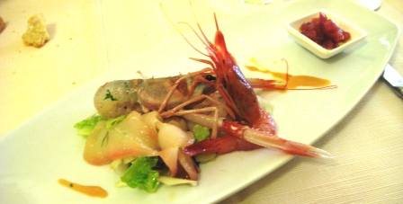 la cernia, perfettamente sfilettata diventa ottimo abbinamento per la maionese di ricci di mare…cosi’ come lo scampo ed il gambero rosso, vengono esaltati da qualche granello di sale integrale e qualche goccia di ottimo olio extra vergine.