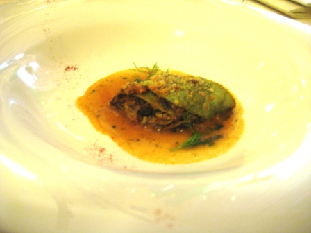 Cannellone al finocchietto selvatico con ragout di triglie alla “beccafico” con salsa all’ “astrattu” di pomodoro…sapidita’ , gusto e tradizione vengono sprigionate ad ogni boccone, ottima preparazione ben eseguita e con ottimo risultato gustativo, cosi’ come il prossimo piatto:
