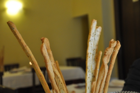 Al tavolo, iniziamo subito assaggiando i fragranti grissini con semi di finocchio,