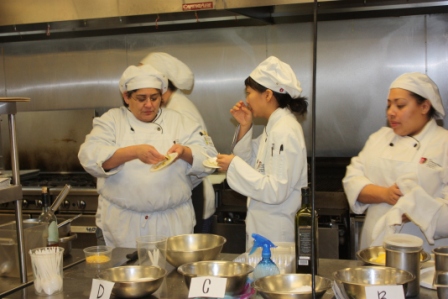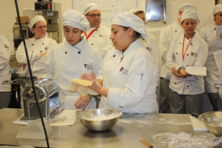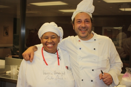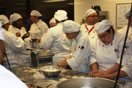 Caro Andrea, uno scoop: siamo finiti sul sito della polizia! Ci siamo finiti per colpa di Carmelo: anche i policemen vogliono venire alle sue cene!!! Oggi cooking class con gli studenti dell’Art Institute. Due dozzine, come si conta qui, tra i 25 e i 45 anni di età (qui si studia a tutte le età, si cambia vita a tutte le età, ci si rimette in discussione a tutte le età). All’inizio freddini, compostini, con gli appunti delle ricette in mano.