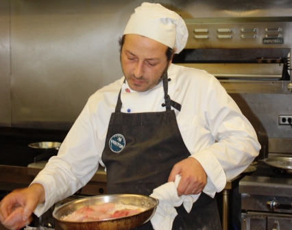 Nelle cucine negli Stati Uniti vedo fare con i guanti operazioni di cucina che a uno gli viene da dire «Ma allora che l’hai fatto a fare di diventare cuoco, se ti privi di questo piacere, di questa conoscenza?» Perché la conoscenza viene anche dal tatto, e oggi Carmelo gliel’ha spiegato. Il clima freddo e compostino si è sciolto in fretta, dopo venti minuti erano tutti intorno ai piani di cucina, seguivano la piastra di sale alle arance, pepe nero e basilico;