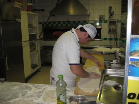 il piccolo locale (pizzeria da Franco) si riempe in pochi minuti di gente…tutti chef, grandi nomi e grandi firme tutti al tavolo ad assaggiare la “pizza notturna” ovviamente margherita o la classicissima marinara.