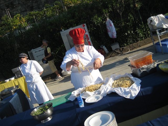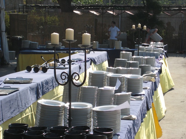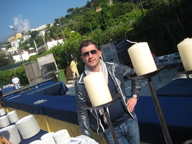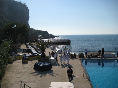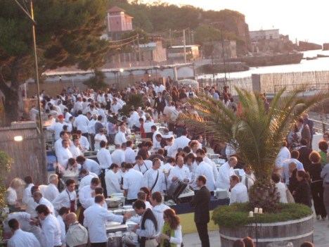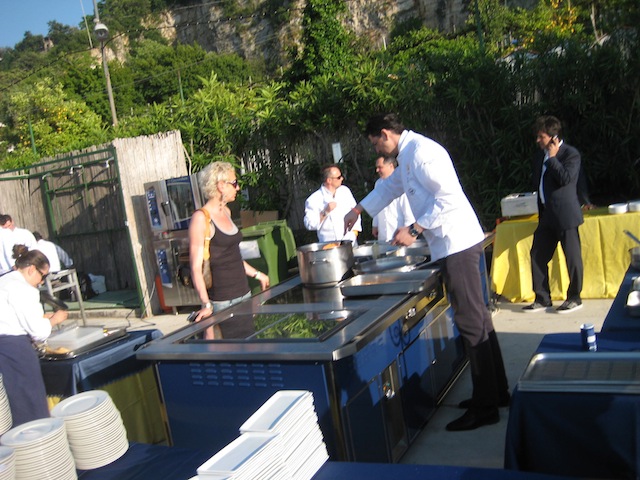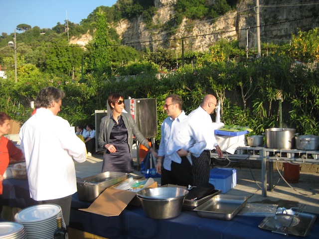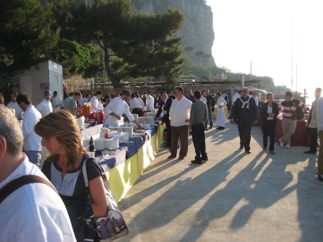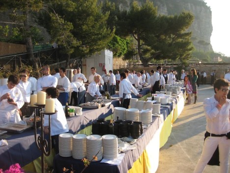 La festa e’ finalmente in corso il brulicare delle giacche bianche da una parte e gli avventori dall’altra…e tutt’intorno una serie di profumi che si mischiano con l’odore di questo splendido mare ed inebriano i sensi riempiendo l’animo di felicita’.