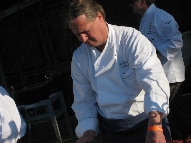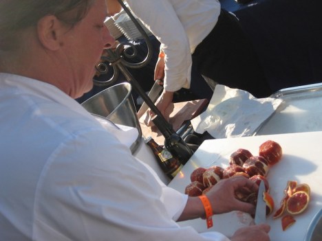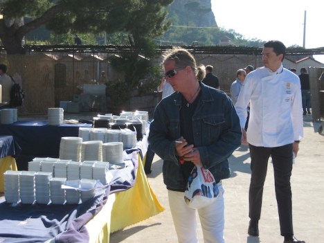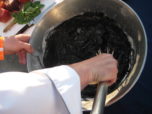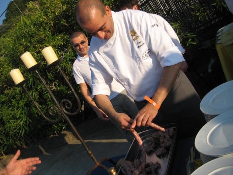 mentre Pino Cuttaia prepara per il suo pane e salsiccia cotta in buccia di mandorla (proposta perfettamente in tema con la manifestazione dedicata appunto allo street food, ma quasi provocatoria per la sua semplicita’)