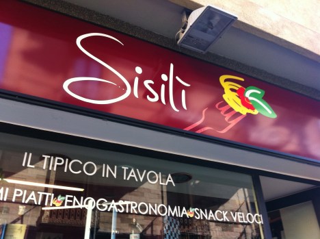 Sisili si trova in via Musumeci 126 quasi ad angolo con piazza Trento e’ aperto dalla mattina fino alle 9 di sera e lo consiglio vivamente per uno spuntino veloce, da provare il pranzo e…perche’ no, magari per un buon aperitivo prima di andare a cena.