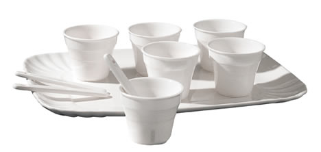 Sempre da Invotis, design by Fred, 4 tazzine in silicone con piattino per servire i tuoi dessert in modo elegante e sicuramente unico, spazio alla fantasia con le decorazioni, in silicone alimentare sono riutilizzabili.
