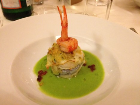 I due “fratelli Coria” (come ormai sono stati definiti da Caponataweb) hanno provato ad accompagnare lo zibibbo con il «medaglione di Pesce Spatola, con zucchina alla brace, gambero rosso di Mazzara la sua salsa e scamorza leggermente affumicata». Piatto davvero interessante, ben preparato e che ha manifestato un perfetto equilibrio tra gli elementi di mare e quelli di terra, sapientemente interpretati.