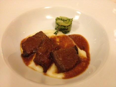 Con il passaggio ai secondi è scesa in capo l’artiglieria pesante; non me ne vogliano Patti e Colonnetta se non mi dilungherò sulla «guancetta di vitello in conserva di pomodoro, con cavolo rapa» per dar spazio al vino che lo accompagnava il “Cerasuolo di Vittoria Grotte Alte 2006” di Arianna Occhipinti.