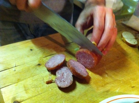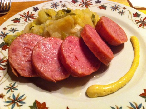 Viene servita con la “saucisse aux choux” ovvero una salsiccia al cavolo ed abbondante senape.