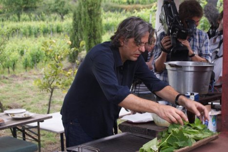 E la promessa di tornare l’ha mantenuta alla grande realizzando un programma Sicily Unpacked, una serie di tre puntate di un’ora, andate in onda su BBC2 e BBC2HD. Insieme al critico d’arte Andrew Graham-Dixon, hanno effettuato un viaggio mettendo davvero “allo scoperto” il patrimonio culturale, storico e gastronomico della Sicilia. L’Etna, la Villa Romana del Casale, Modica hanno fatto da cornice alla serie televisiva con i loro panorami, le loro storie, i loro patrimoni, le loro cerimonie religiose, le loro ricette ed i propri prodotti, impreziosendo le incursioni della troupe tra mosaici, le vigne, il barocco e i fornelli sempre accesi! Ecco che nella dolcezza della narrazione, i mafiosi diventano briganti, la Sicilia si svela in tutto il suo splendore e la sua solarità illumina e riscalda le scene, ribadendo l’innata capacità dei siciliani di accogliere i propri ospiti. Il meraviglioso patio di Ciro e Stephanie ad esempio, incastonato tra le vigne di Cisterna Fuori, luogo fantastico ed unico aggrappato all’Etna, ha visto sfrigolare le padelle con Giorgio che ha esaltato con le sue estemporanee ricette i vini di “casa”… i Vini Biondi http://www.vinibiondi.it/flashsite/
