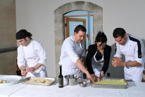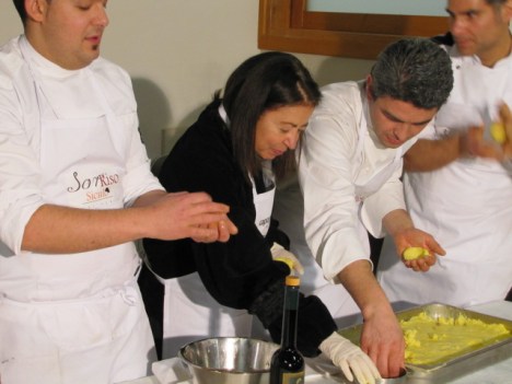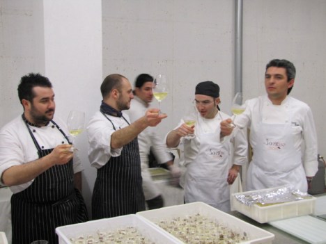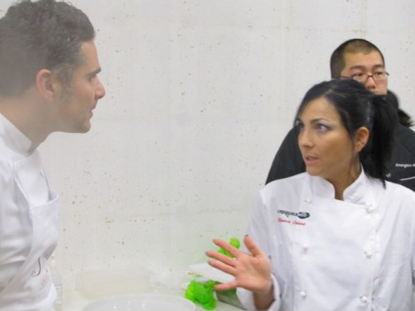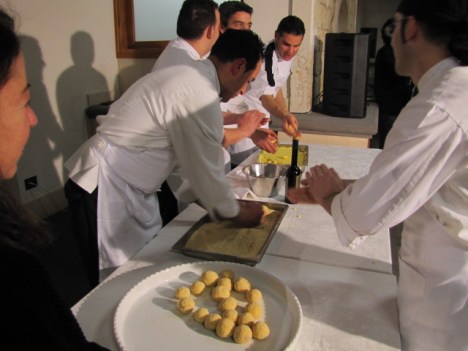 Altra immagine rubata all’insaputa di Onofrio Brucculeri (Hotel Imperiale -Taormina) è stata quella dei Tortini di Riso che poi sono stati serviti con crema di carciofi, seppioline appena scottate ed il loro nero.