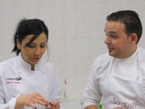 …..trovo cinque fantastici chef super professionali e rilassati, con uno staff fantastico, che si muovono all’unisono, con la risata e la battuta sempre pronta…tutti con un comune denominatore Riso e SorRiso. Tutti lì pronti a rendere omaggio al Riso dell’Azienda Agrirape di Angelo Manna. Ognuno di loro ha creato un piatto ma tutti hanno contribuito a realizzarlo, i loro accenti siculi si sono fusi in un solo coro, ed io ho avuto il piacere e la fortuna di vederli all’opera.