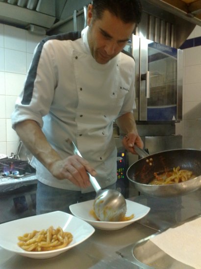 Materie prime sceltissime, stagionalità, una cucina “fatta in casa” (termine spesso abusato e male interpretato), perché tutto il ben di Dio che offre la campagna ed il mare a pochi centinaia di metri dalla cucina del Crocifisso ha bisogno solo di essere messo prima in pentola e poi in tavola con affetto e rispetto. E tutto ciò si respira tra i trenta posti del Crocifisso, con Marco attento interprete e appassionato narratore dei suoi piatti, che spesso parlano di casa, di mamma e papà e di una Putia del Vino di famiglia che per anni è stata la vera palestra di vita e di esperienza professionale ai fornelli del giovane Baglieri.