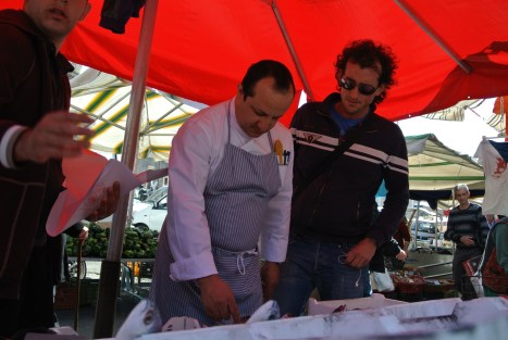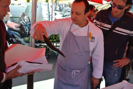 Qualcuno nei giorni scorsi vociferava riguardo al menu’ definendolo un po’ “ambizioso” da presentare in trasferta, ma il buon Ciccio con l’aria di chi ha tutto sotto controllo da le ultime indicazioni al suo staff e, finito il breafing si dedica ad un rituale quasi mistico…il giro tra le bancarelle della “fera’o l’uni” per gli acquisti dell’ultima ora.
